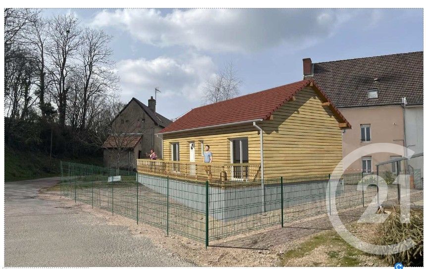 Projection possible d'une maison type plain-pied avec terrasse et stationnement